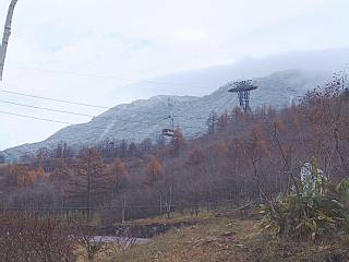 | 横岳ロープウエイ 山頂にはうっすらと雪景色 |