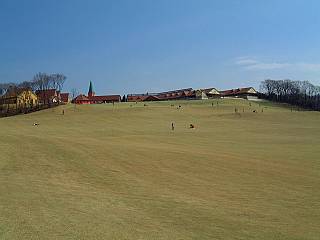 | 丘の上に広がるドイツ体験できる施設、ショップが立ち並ぶ |