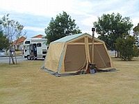 到着後、挨拶もそこそこにテント設営。今回は薪ストーブ持参で寒さとは無縁の用意。催しに参加予定だったが、なんか疲れてしまいのんびり過ごすことにする。ただ単に一杯飲み始めたら動くのがイヤになっただけなんだけどね。(笑)
