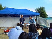 集合写真の後ゲーム大会。参加されてる皆さんはヤッパリこれが一番の楽しみのようです。恒例のじゃんけん大会ってところ。ただ普通の大会と違うのは全員にプレゼントがまわるように配慮されている。軍手一個って人もいるけど、何ももらえないよりはイイ。