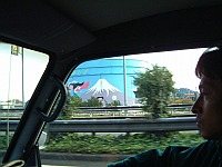 竜洋は晴天だったけど、関東に近づくにつれて雲が出てきた。おかげで好きな富士山が見えないなので、大きなタンクに描かれた富士山の絵で我慢する。(爆) |