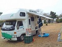 11:30 大原オートキャンプ場にチェックイン。途中、撮影中の「鉄腕DASH」のソーラーカーとすれ違う。ソーラーカーの後ろにスタッフの車が3〜4台。撮影も大変だなぁと実感する。