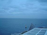 15:40 海ほたるに立ち寄る。アクアライン横風11m。足回りを固めていても、国産キャブコンのキャンカーでの走行はかなり怖い。(汗) 海ほたるは東京湾の真中に出来た人工島。最上階のデッキから遠くを見ていると、大きな船に乗ってるような感じになる。