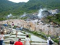 | 山肌のあちらこちらから白いガスが出ています。実は危険な火山ガスが多く出ているのです。亜硫酸ガス・・これを吸い込むと生命に関わるらしい。(怖)