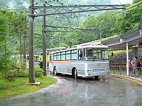 「扇沢駅」と「黒部ダム駅」を長〜い6.1kmのトンネルを利用して、16分位の時間で往復しています。 |