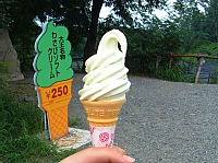| 定番のわさびソフトクリーム。結構美味しいです。 |
