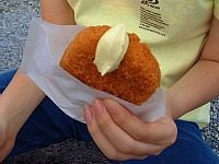 こちらはわさび入りコロッケ。わさびマヨネーズをつけて食べます。これも美味しい。 |