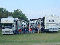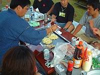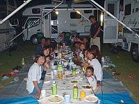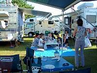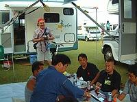 10:00 無事に入場です。9:00に入場開始ですが、受付にキャンカーが一気に並んだもので、大渋滞です。我が家はくろんぼさん関係と最後の方に入場です。なので、それまで駐車場でのんびりしてました。(笑) サイトにてコの字にセッティングして宴会会場の出来上がりです。イベントにはほとんど参加せず自分たちのサイトでノンビリしたり、知り合いが来てないかサイトを回ってました。広島でお会いしたエディ乗りのogawaさんとも再会。月曜日まで休みを取って清里を周って広島に帰るとのこと・・お気をつけて!しかし、昼間は食欲も無くダウンです。やはり寝不足は身体に良くありません!(笑) 妻は潮干狩りしてましたが成果はいまいち・・・まあ、時期じゃありませんからねぇ。(笑) 昼寝をして体力復帰です。夕方からくろんぼパパ特製のお好み焼きパーティーの始まりです。その時ACのスタッフの取材が・・・なぜか皆さん、緊張してるのか何時もの雰囲気ではありません。エライ静かです。(爆) まあ、業務用のお好み焼きテーブル持ち込んでたら目立ちます・・アハハ。アルコールもすすみかなり盛り上がって来ました。そこでNC関東に攻撃???です。どうなったかは書けません。(笑) さて、色々サイトを回ると一番盛り上がっているのは我が家の居るサイトのようです。周りは静かです??。なので24:00には就寝です。後で聞いたのですが、ACスタッフの居酒屋も24:00まで開いてたそうな・・・。我がサイトだけじゃなくて良かった。(笑) 今後は、ご迷惑にならないように、22:00就寝を心がけなくては・・・。