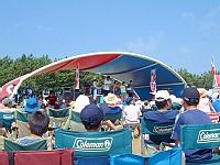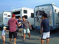 0:05 途中、事故渋滞にハマリ20分ほどロス。しかし無事に渚園駐車場に到着。しかし思っていたより駐車場はガラガラ。昨年の方がいっぱいいたような・・。まあ、これから到着するのでしょうね。さてお仲間を探すと駐車場の一角が非情に盛り上がっている様子。そうです、くろんぼさん関係です。(笑) 早々お邪魔しました。仕事と運転の疲れもありましたが、お付き合いさせて頂きました。その後ももくん&karcさん登場。