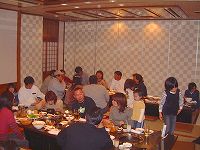 さて、乾杯が始まって時間が経つとご覧の通り・・・。盛り上がっちゃってます。アハハ。 |
