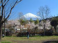 富士山がキャンプ場から良く見えます。天気が良いのでとても綺麗。(笑) そうそう、さくらが満開で見ごろでした。 |