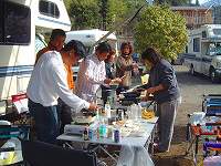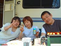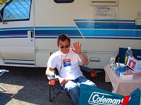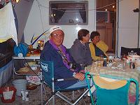 こちらは隣りのサイトでクラブキャンプをされている「NFC(日本ファミリーキャンパークラブ)」の会長さん。お会いするのは二回目。一杯ご馳走になりまして、ありがとうございました。 |