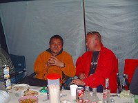 朝はまだボ〜ッとしていましたが、すでに集まって飲み会開始です。 |