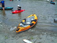 初心者にはお勧めらしいカヌー。「スターンズIK140」。カヌーってのは漕ぎ慣れないとクルクル回って進みません。初心者にはフィン付きが良いそうです。(笑) |