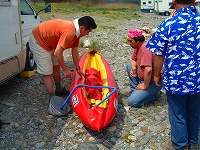 即売も行なわれていたのでカヌーを持ってないが、「カスケードデザイン防水バッグ」「デイツーPFD」×2、「ディツーロングパンツ」「ディツーサーフベスト」を購入。後はカヌー艇???(笑) |