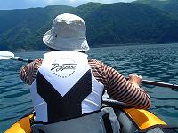 妻を前にして、湖上でのパドリングを楽しみました。 |