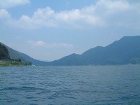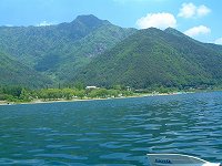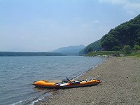 キャンプ場の方面を湖上から撮ってみましたが、結構遠くまで余裕で漕ぎ出せましたね。 |