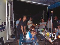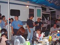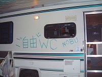 「じゃっくぱぱ」さんがなにやらゴソゴソ・・・「NOBU」さんのキャンカーが移動トイレ車に変身です。(笑) |