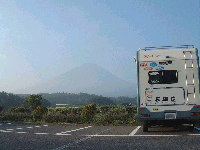 道の駅「なるさわ」より撮影。朝日に照らされた富士山が、薄いモヤの中に浮かびあがり綺麗でした。 |