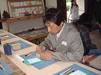 で、真剣に印鑑作りを体験です。(笑) 結構簡単ですよ。窯に入れて焼き上げるので、作った印鑑は後で自宅に送ってもらいます。写真はもちろん私。(笑) 印鑑作り、一文字で送料込み720円。