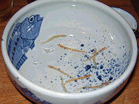こっちは「イサザの踊り食い」。白魚のちょっと大きいやつって感じ。 |
