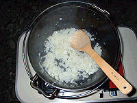 先ずは、みじん切りの玉ねぎを茶色くなるまで炒めて・・・。