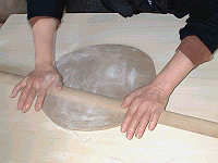お次はChumママに伸してもらい・・・これも均等に薄くするにはやはり腰です、腰!ハハハ。