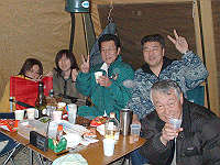 写真は、皆さんで年越し出来たことを祝って「乾〜杯!」。 |