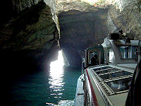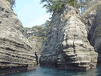 小島と小島のこ〜んな狭い場所も船で通過します。船から手を伸ばすと岩肌に触れられそう・・・だけど実際には手は届きません。
