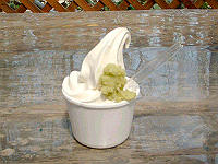 ここに来た目当てはこれ・・・「わさびソフト」。妻も大喜びの味です。