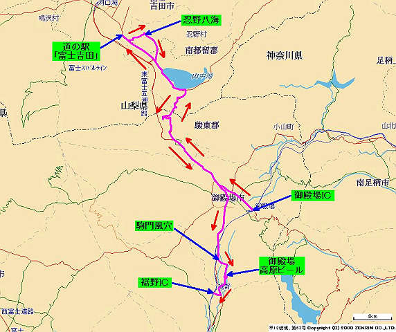 道の駅「富士吉田」 → 国道138号 → 忍野八海 → 国道138号 → 御殿場 → 国道246号 → 駒門風穴 → 御殿場高原ビール → 国道246号 → 裾野IC → 東名高速 → 横浜町田IC → 自宅