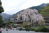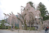 | 樹齢千年は超えているしだれ桜。 見ごろは過ぎちゃったけど、まだまだ綺麗でした。 |