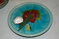 甲州牛の牛刺は岩塩で・・・初めて食べたけど美味しいですね。 |