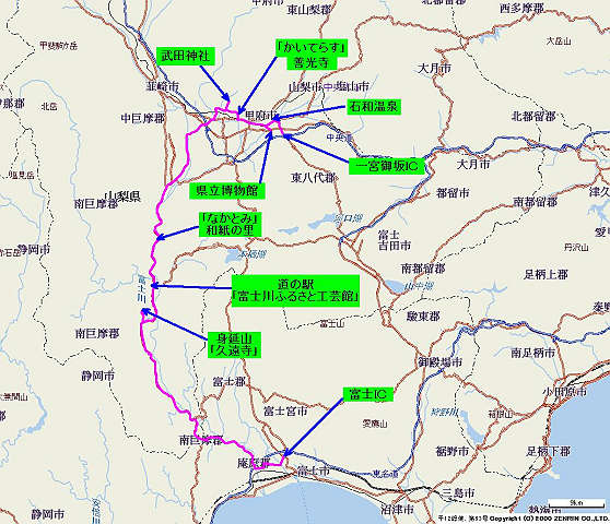 | 道の駅「富士川ふるさと工芸館」 → 「なかとみ」和紙の里 → 身延山「久遠寺」 → 武田神社 → かいてらす、善光寺 → 県立博物館 → 石和温泉(泊) |