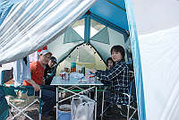 管理人さん到着後、直ぐに設営開始。
