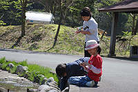 | 子供たちは何してるのかと近づくと・・・ |