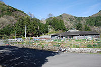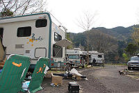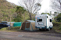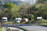 このキャンプ場は丹沢湖のダムの下に位置します。 |