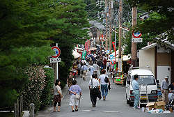 参道には多くのみやげ物屋が並ぶ。