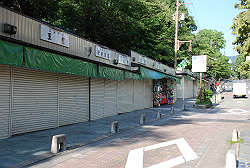 三条通り「すべり坂」付近の露店的なお土産屋は殆どが閉まっている。