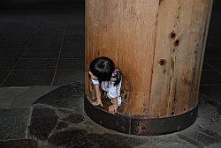 柱の一本に大仏様の鼻の穴の大きさの穴。
