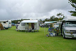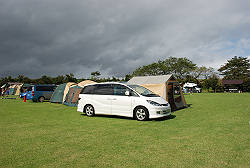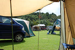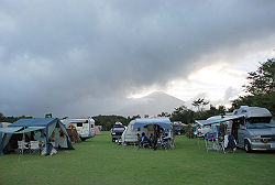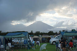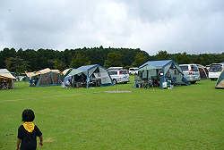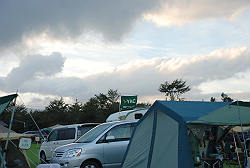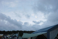さて、自分の場所を決めてテント設営。 一段落したら天候が・・・。 |