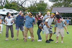 自然と皆さん力が入り転倒する者も・・・普段いかに運動してないかがバレバレです。(笑)