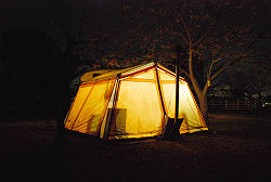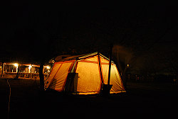 寒くなってきたので再びテントの中へ。 |