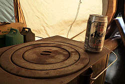 で、落ち着いたところで一杯・・・ストーブの上にのってるけどホットビールじゃありません。(笑) |