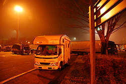 平日なので高速道路の片側3車線のうち2車線は大型トラックに占領されての走行。