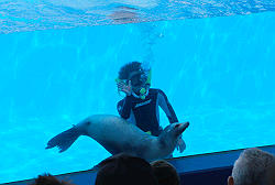 イルカってツルツルしてるから、かなり難しい技だとか・・・。 |