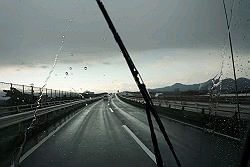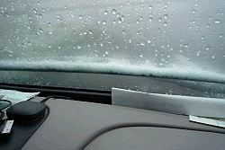 雨音がしなくなったので「止んだかな?」とフロントウインドウを見ると・・・白い物が? |