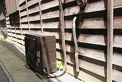 エアコン室外機・・・景観を合わせるのに茶色く塗ってある。 |