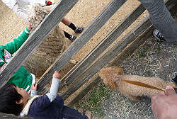 | だけど、似たような毛が生えている羊には興味深々。(笑) |