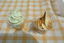 で、カスタードプリンアイスにかん甘熟メロンアイス。 |